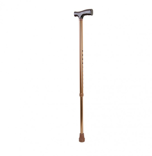 Bastón en T de aluminio, regulable y plegable (80–90 cm).