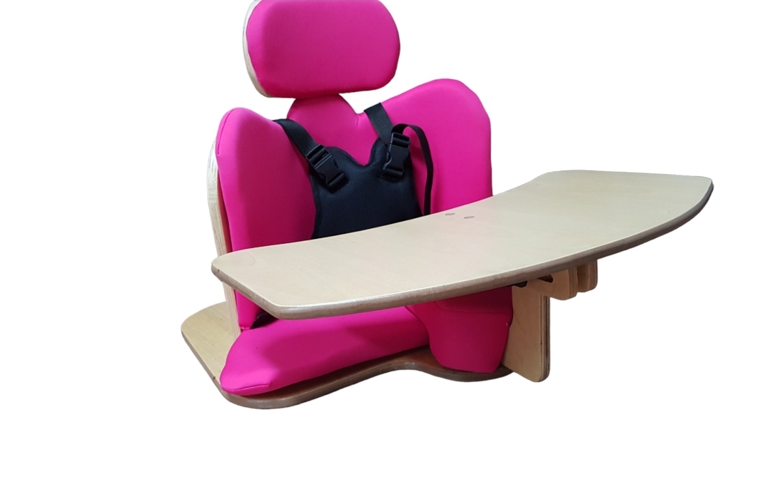 Asiento cóncavo de guatambú laqueado, con block abductor y apoya cabeza.