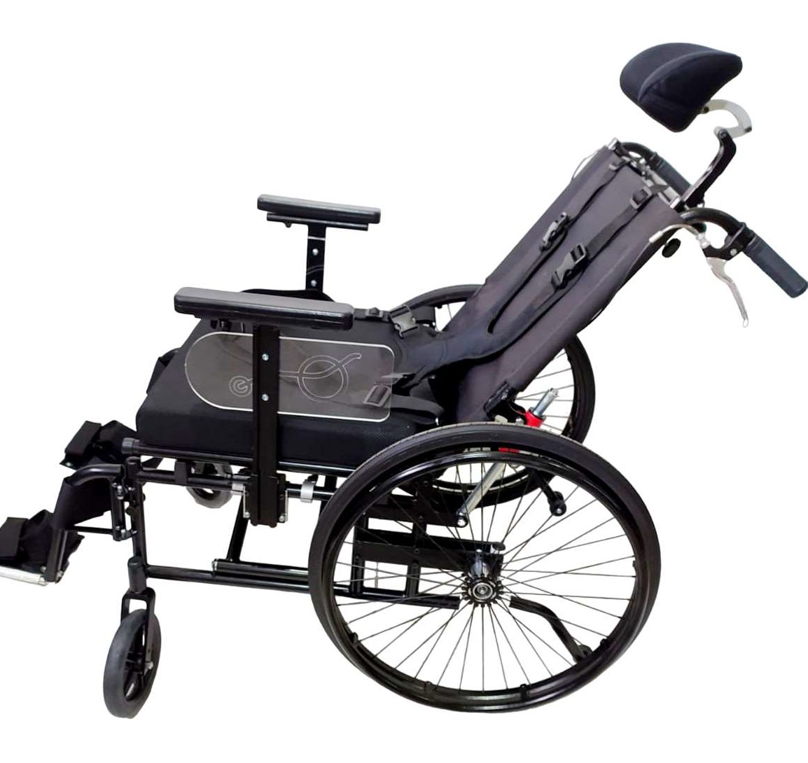 Silla de traslado reforzada con respaldo reclinable.