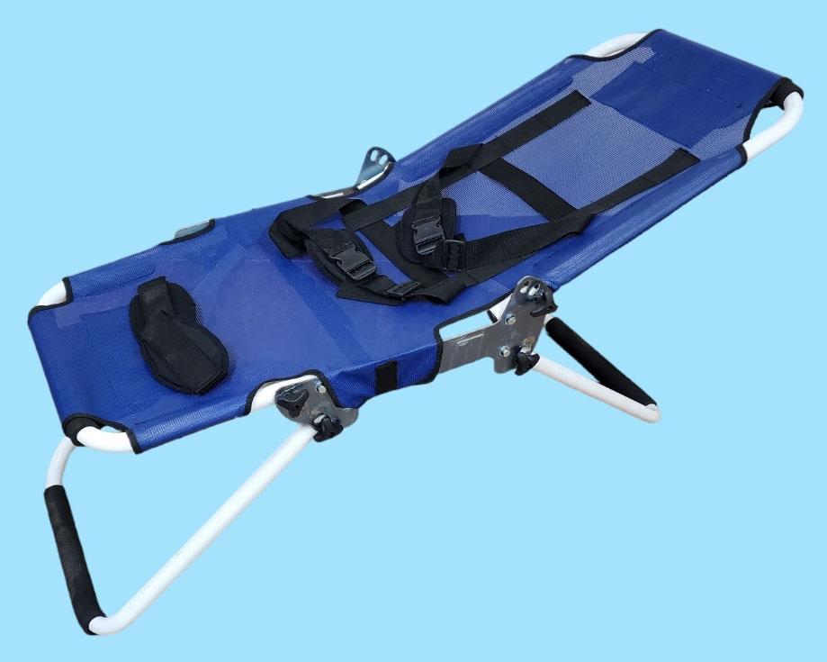Tabla regulable de 90° a 150°, con controles de tronco, cadera y mesa ajustable.