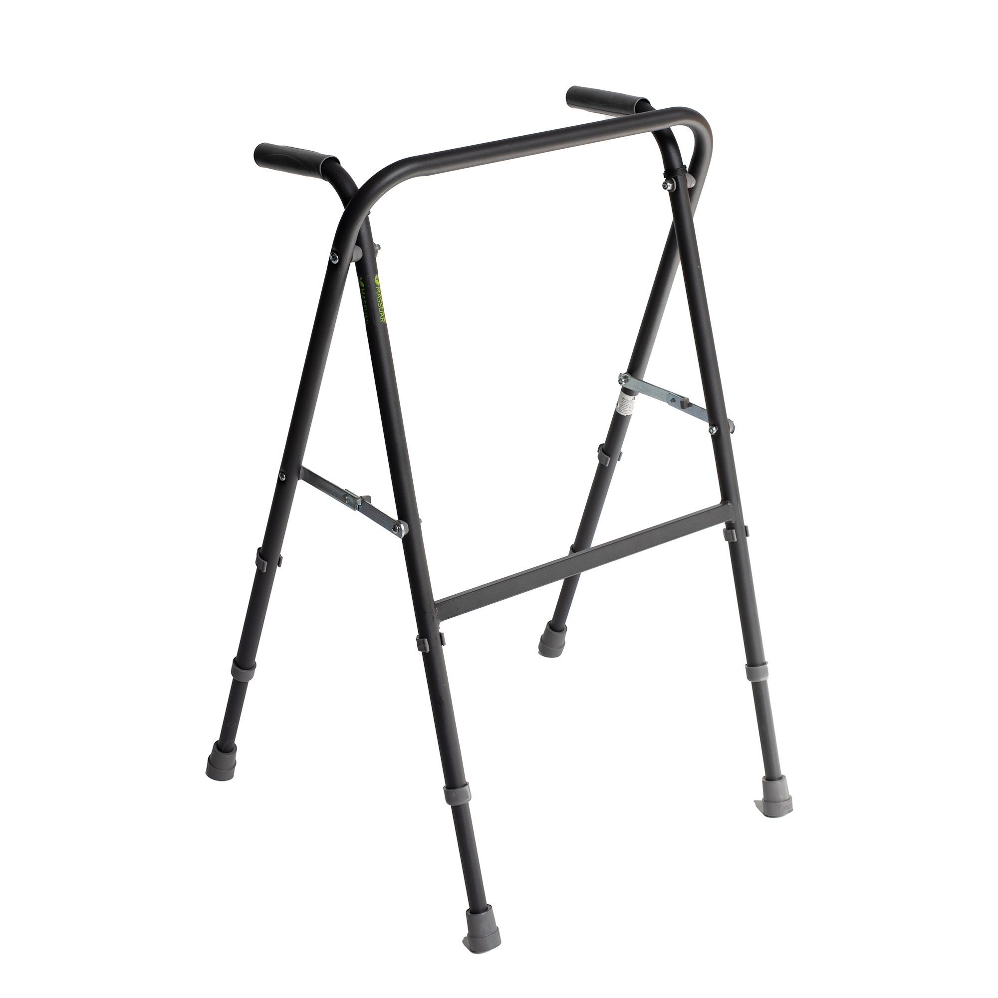 Andador tipo tijera de hierro, sin ruedas, con 4 regatones antideslizantes.