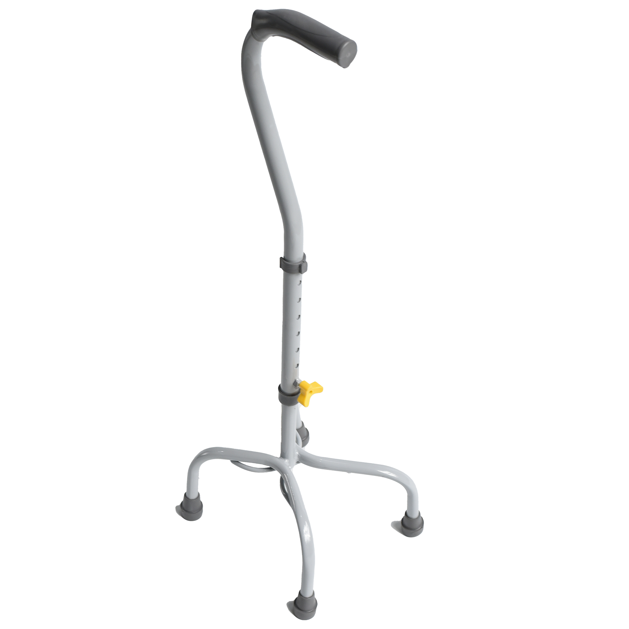 Bastón trípode de hierro pintado, mango curvo, regulable.